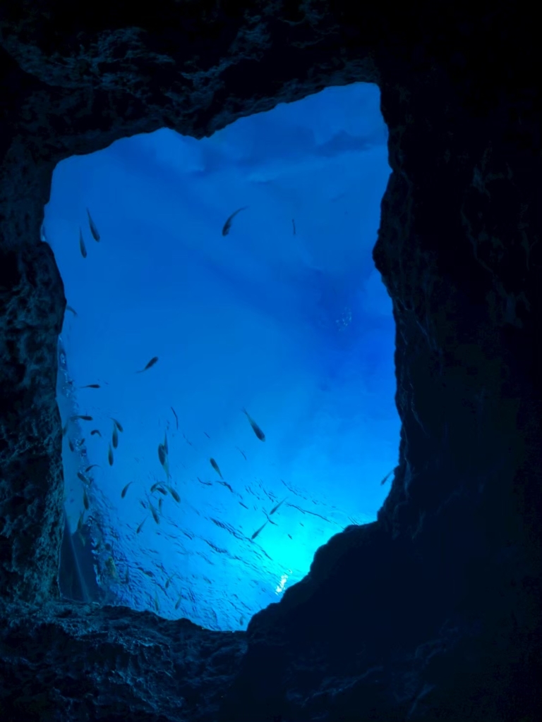 洞窟の奥から光が差し込む幻想的なスポットです。